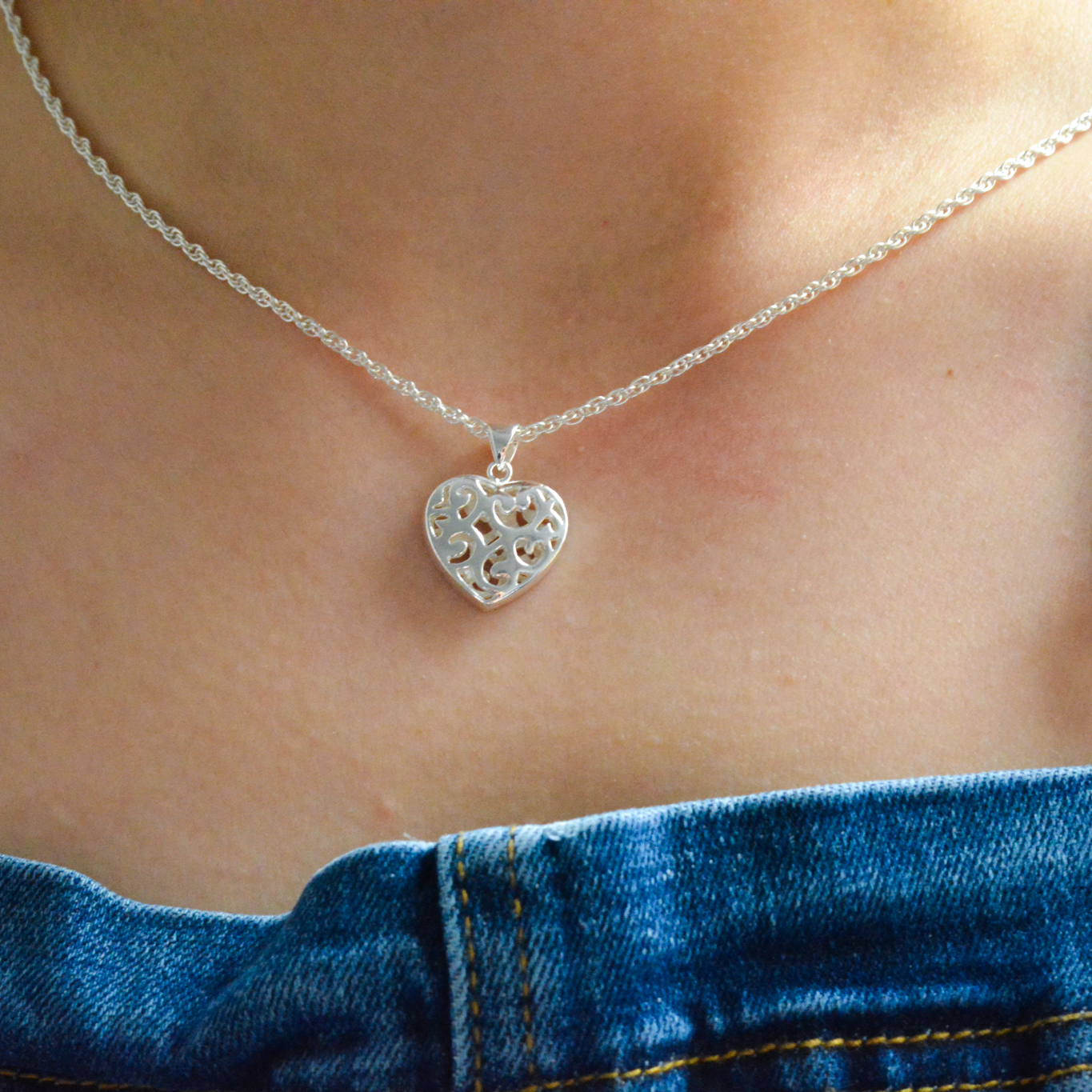 Filigree Heart Pendant Necklace – 925 Sterling Silver or 18ct Gold Plated